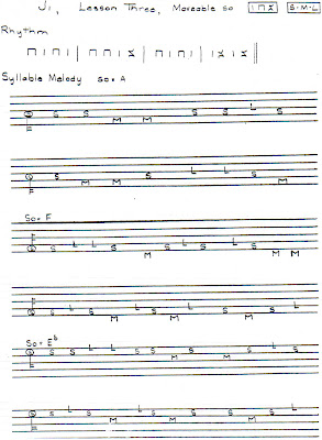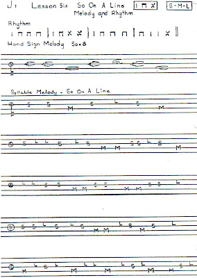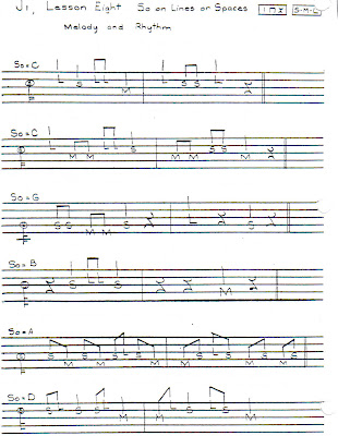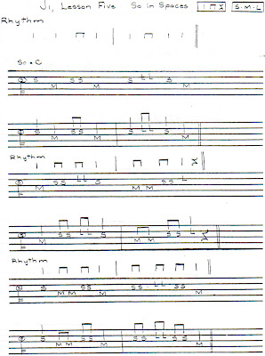 The top line above is a lot easier for young voices to hit correctly. You can also see how the clapping pattern has become the singing pattern.