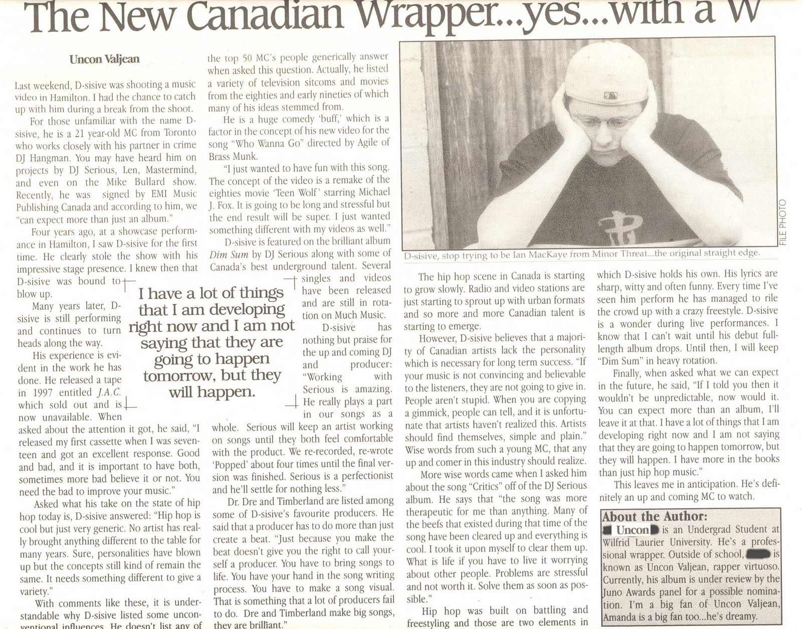 Last month, I caught up with him again and this time we did a radio interview for DOPEfm. I showed him the university article and he thought it was hilarious. He certainly has changed a lot in the past ten years. So much so that I didn’t think it was appropriate to share this old article with you. However, D-sisive told me to post it up, so here it is.