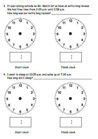 The CD-ROM had a file with a blank clock graphic. I copied it onto a word file and wrote some questions for my students to solve.