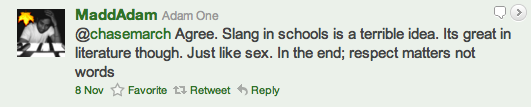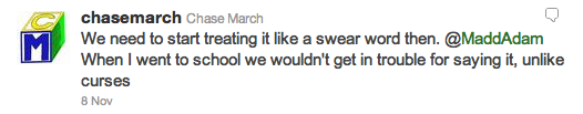 I love that you can have a healthy debate on Twitter. Maybe we’ve raised some awareness on this issue. Let’s stop using “gay” as an insult and if we hear it, let’s stand-up and say something about it.