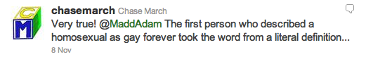 The word gay is branded now so that the past definitions really don’t even apply any more in this day and age.