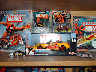 Very nice collection, Chase! I never have seen one of the semi trucks, so don't have that one. Very classy display, so much neater than mine! I've been doing a blog featuring some of my stuff over at http://www.daredevil365.wordpress.com. Drop by and say hi!