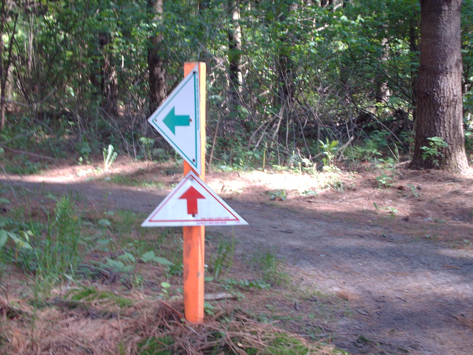 Just as the trail made its way into “The Pines,” I came across this sign. It looked liked these trails were solely for bikes, but there since there was no icon specifically banning hikers or runners, I pressed on.