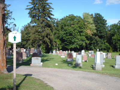And then things really get strange. I have to run between headstones and through the cemetery before the trail rejoins the side streets.
