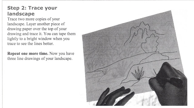 Step 2 – Print out or trace 3 copies of the landscape scene you want to use. It is important to have three copies of one scene and not just three different landscape scenes.