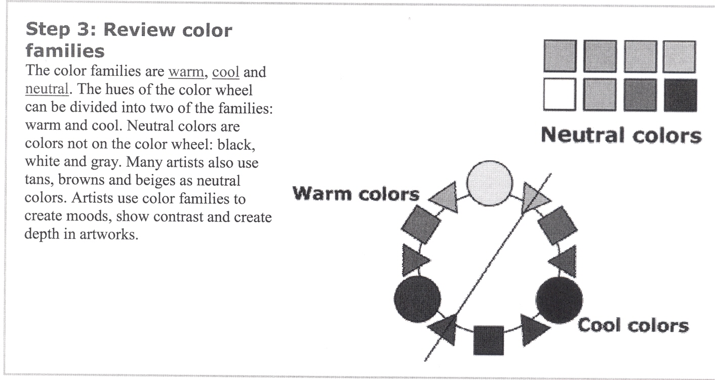 I like to have a class discussion at this point. You can discuss how these moods can still be maintained in a work even if all three families happen to be used in one picture.
